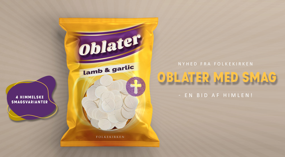 I dag lancerer folkekirken nemlig en helt ny produktserie bestående af oblater i fire smagsvarianter. De nye oblater kan købes i velassorterede supermarkeder, hvilket giver en unik mulighed for hjemme-nadver til de danskere, der synes, gudstjenesten søndag formiddag ligger en anelse for tidligt.