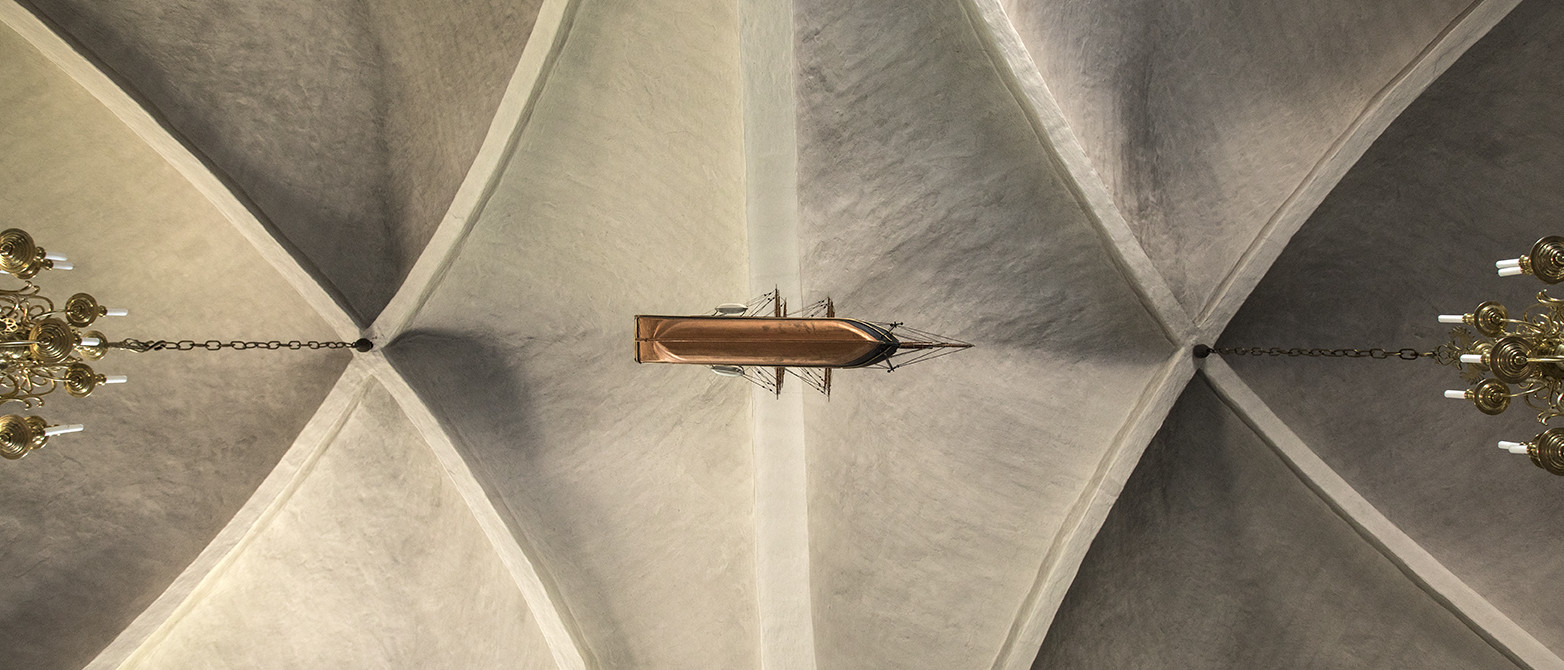 Huset bærer derfor præg af at have stået der i mange generationer: Kirken er fra cirka 1150, døbefonten fra 1300-tallet. Over det moderne kor hvælver sig kalkmalerier uden den store æstetisk værdi, bortset fra at være et postkort fra 1400-tallet. Kirkeskibet (det store kirkerum, red.) er et renæssancerum med smukt udskåret træværk i prædikestolen og med stolestader i træ foran et ret nøgternt udtryk i orglet, der er bygget, så man får glæde af vestvinduet. Men der mangler en arkitektonisk og æstetisk sammenhæng. Menighedsrådet arbejder på den, skulle jeg hilse og sige.